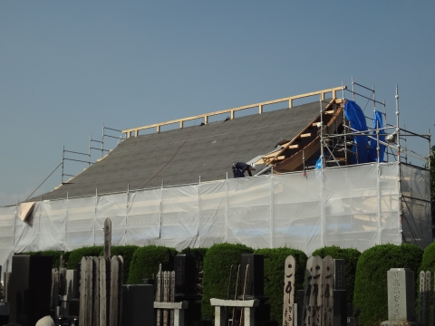 屋根の全体が見えると、新本堂の大きさが実感できます。