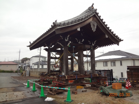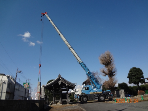 アッという間に移動が完了しました。山門は暫くこの位置で待機となります。