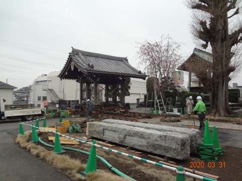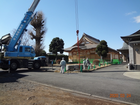 3月の工事は、本堂工事が一段落つき外構工事を中心に進められました。