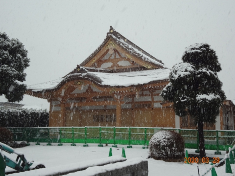 新本堂の初積雪となりました!